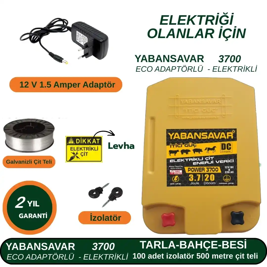 1 adet YabanSavar Power 3700 Elektronik Kontrollü Elektrikli Çit Cihazı